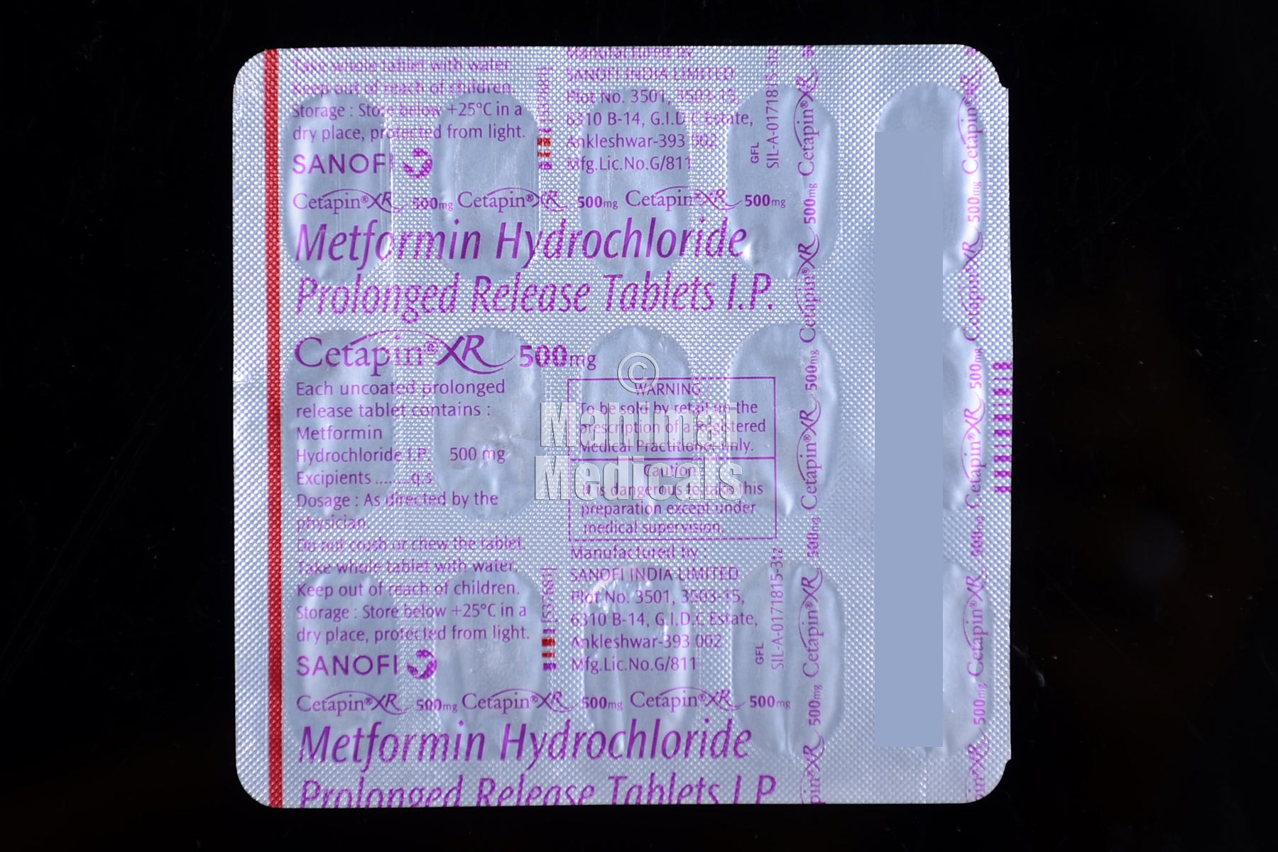 Cetapin Xr 500Mg Tablet is an oral drug that is used to control and balance blood sugar levels. This medication is used in the treatment of conditions such as type 2 diabetes, obesity, cardiovascular diseases, hypertension and polycystic ovarian syndrome. If you do not manage the condition of diabetes, it can result in kidney failure, obesity and heart disorders. Therefore, Cetapin Xr 500Mg Tablet helps keep your blood sugar levels low and your diabetes in check.